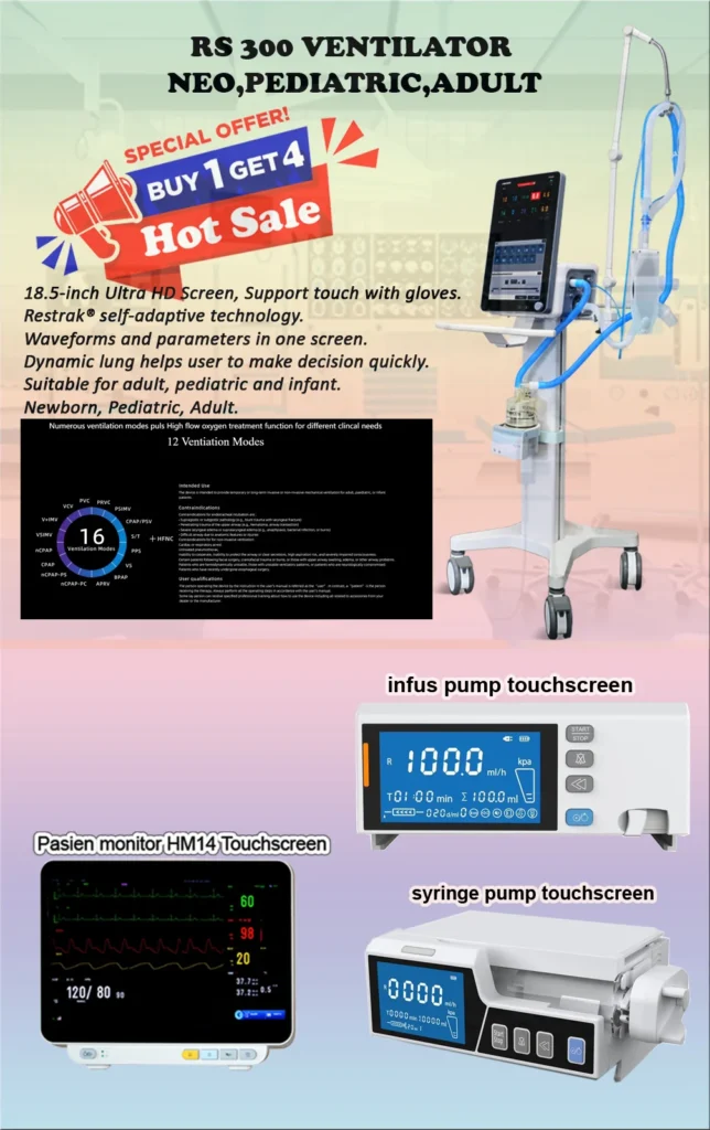 Pasien Type :INFANT, PEDIATRIC, ADULT SPESIFIKASI Layar sentuh Ultra HD 18,5 inci (kompatibel dengan sarung tangan) dengan kemiringan 30° yang dapat dilipat dan keluaran HDMI. 12 mode ventilasi, termasuk APRV,…